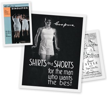 In 1929, the Cooper Underwear Company officially changed its name to Cooper's, Inc. That year, Coopers' developed the Singleton, a new-style union suit with short legs and a sleeveless top and packaged them in cellophane bags – a first in the underwear trade and a huge selling point in modern self-service apparel stores.