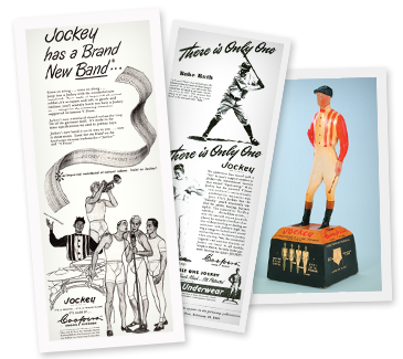 1946 ushered in one of the company's most important merchandising tools...endorsements from star athletes… one of the first being home run king, Babe Ruth. In 1947, the Jockey® brand name was stitched into the waistband of the underwear for the first time.
